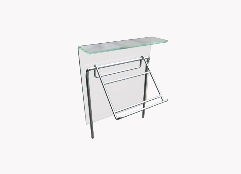 Accesorio metálico de fijación independiente apto para pantalla de base integrada.
