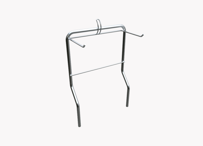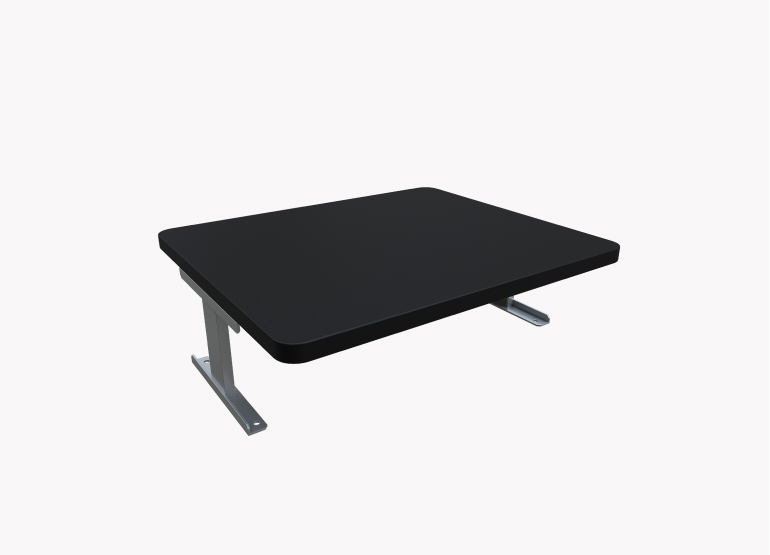 Accesorio metálico con fijación independiente apto para pantalla colgante y bandeja porta teclado.