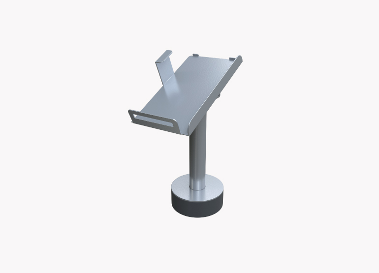 Accesorio metálico de fijación independiente apto para pantalla de base integrada.