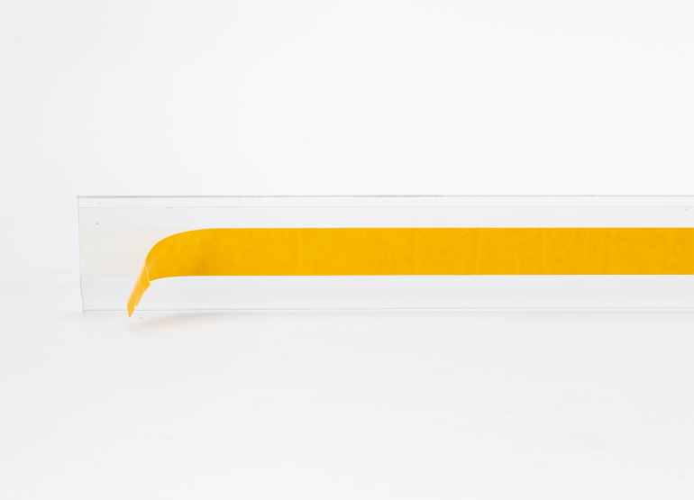 Accesorio encastrable sobre frente de estante cuya función es retener el display en su avance maximizando la exhibición.