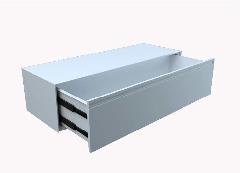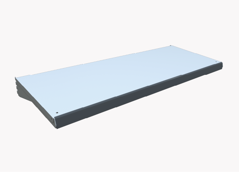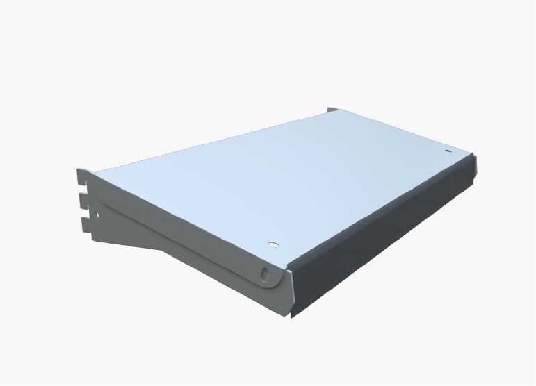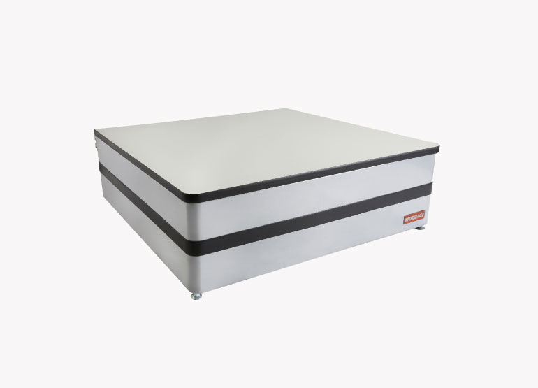Plataforma de base envolvente construida en Acero laf y tapa de melamina con cantos de ABS. Disenado para obtener la mayor capacidad de carga en un solo nivel.