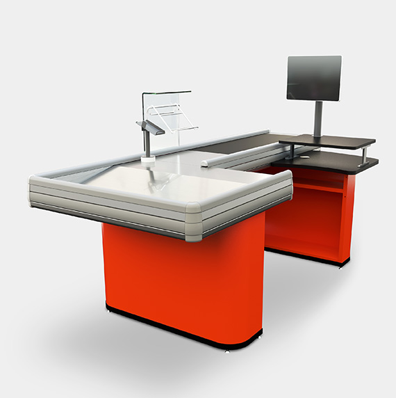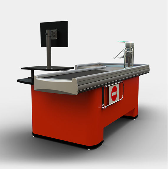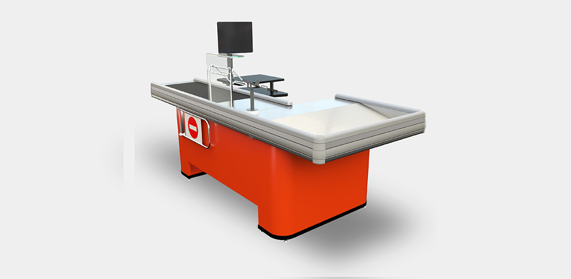 Línea de caja compacta con un diseño exclusivo con frente exhibidor completo para productos de impulso.
