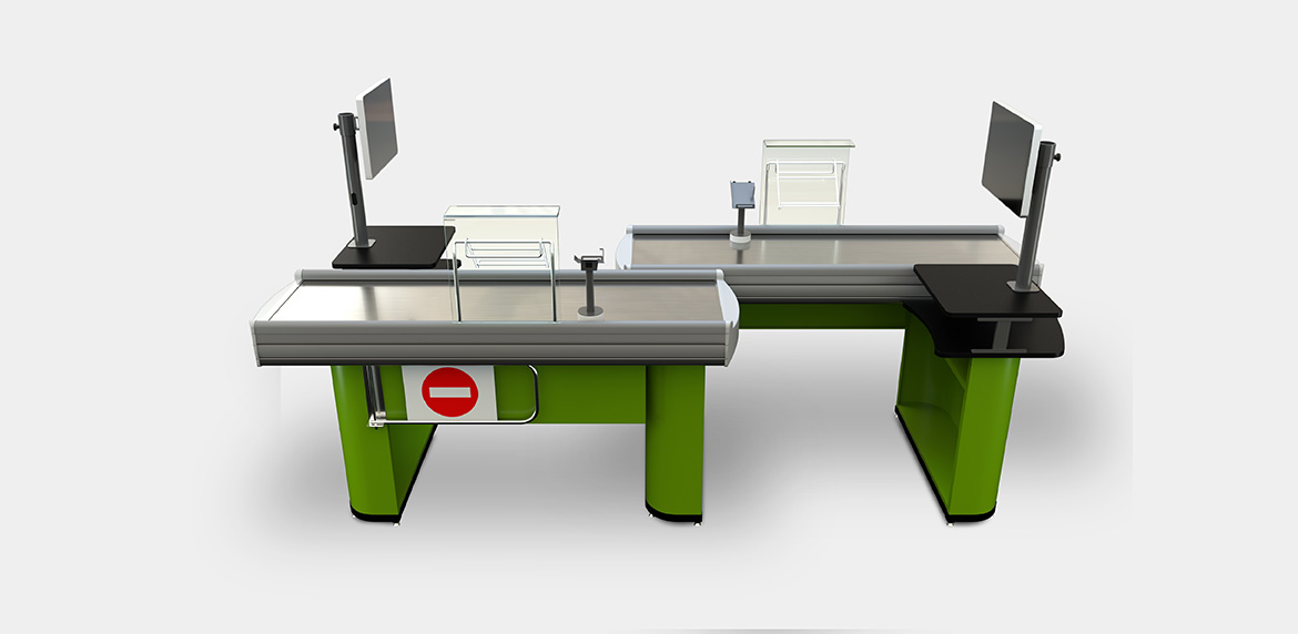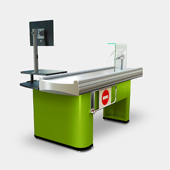 Línea de caja compacta con un diseño exclusivo con frente exhibidor completo para productos de impulso.