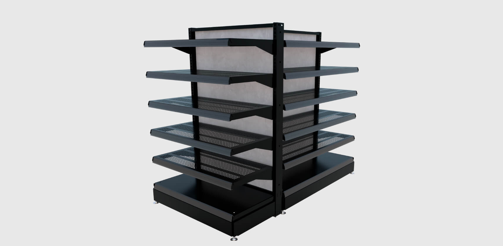 Esta configuración de góndola se utiliza para las configuraciones en las paredes perimetrales de la tienda.